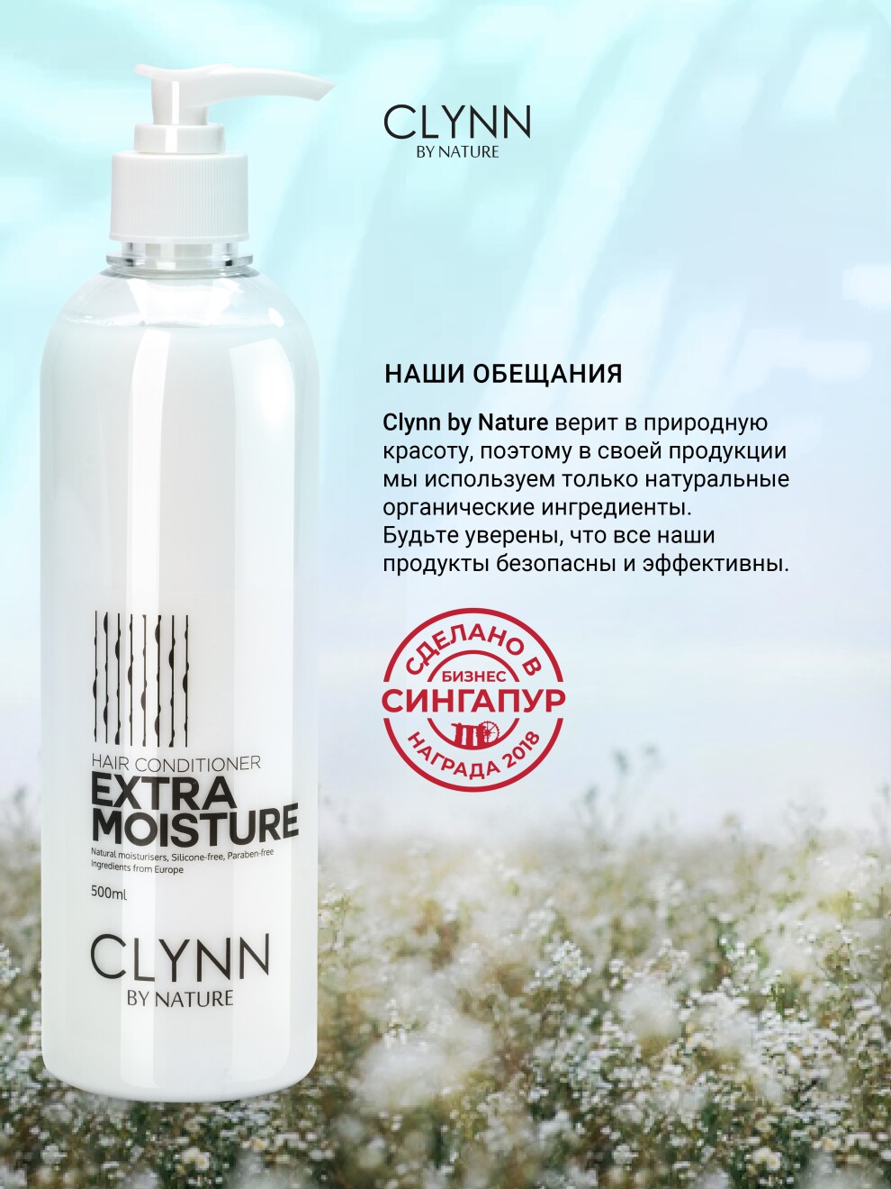 Кондиционер EXTRA MOISTURE (Экстра-увлажнение) бренда CLYNN By Nature (Клинн бай Нейчер) с экстра увлажнением
