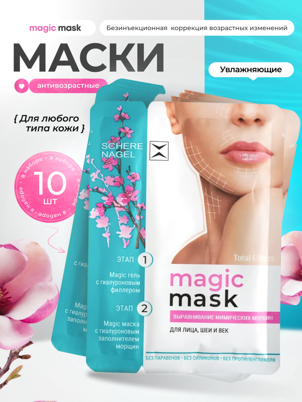 10 омолаживающих масок для лица, век и шеи MAGIC MASK SCHERE NAGEL