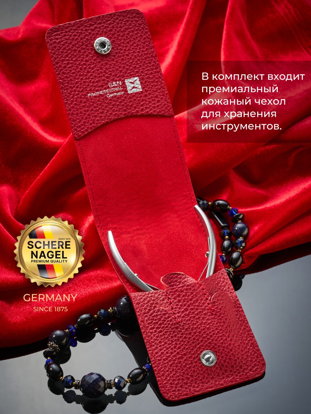 Многофункциональный и универсальный инструмент для обрезного маникюра + красный чехол из эко кожи.