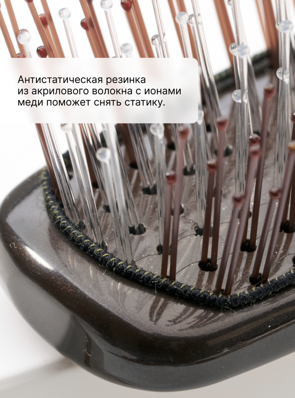 - Антистатическая резинка предотвращает накопление статического электричества, обеспечивая гладкость и послушность волос.