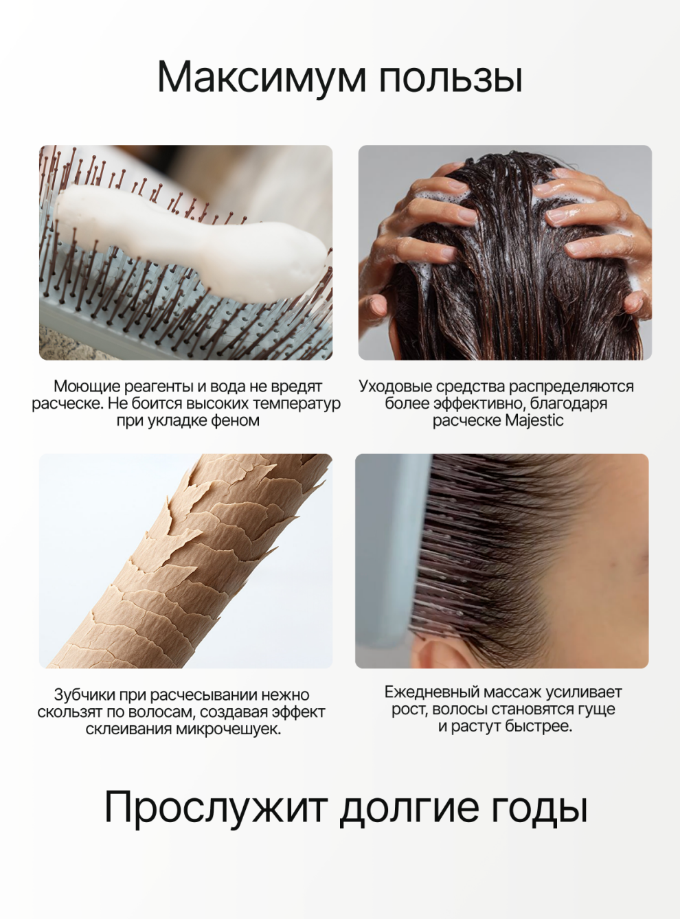 1. Перед мытьем головы расчешите волосы с помощью расчёски для волос Majestic.
