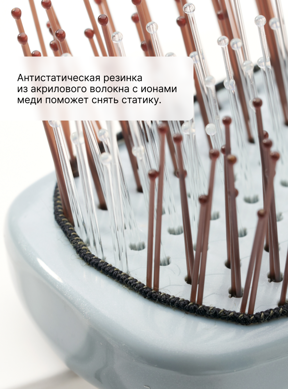 - Антистатическая резинка предотвращает накопление статического электричества, обеспечивая гладкость и послушность волос.