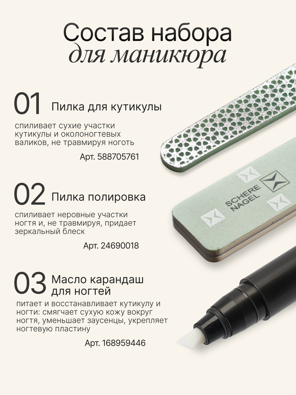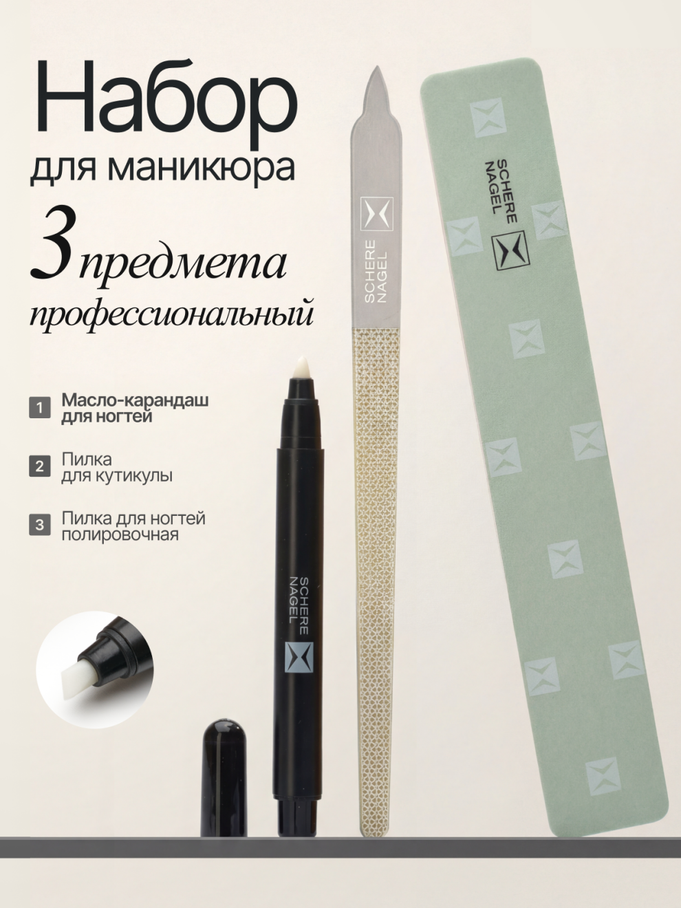 МАНИКЮРНЫЙ НАБОР № 3 SCHERE NAGEL УМНАЯ ПИЛОЧКА ДЛЯ КУТИКУЛЫ + КАРАНДАШ-МАСЛО ДЛЯ КУТИКУЛЫ С ЛАВАНДОЙ + ПИЛОЧКА ДЛЯ ПОЛИРОВКИ НОГТЕЙ