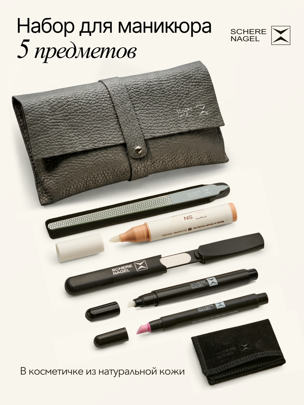 Набор для необрезного маникюра SCHERE NAGEL 5 предметов + Косметичка графит в подарок