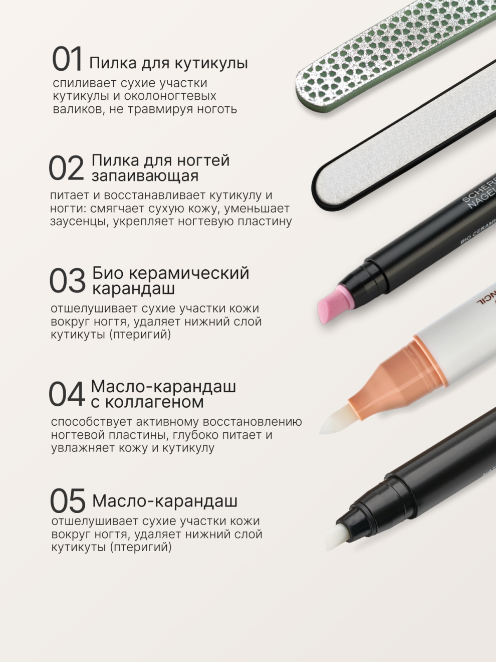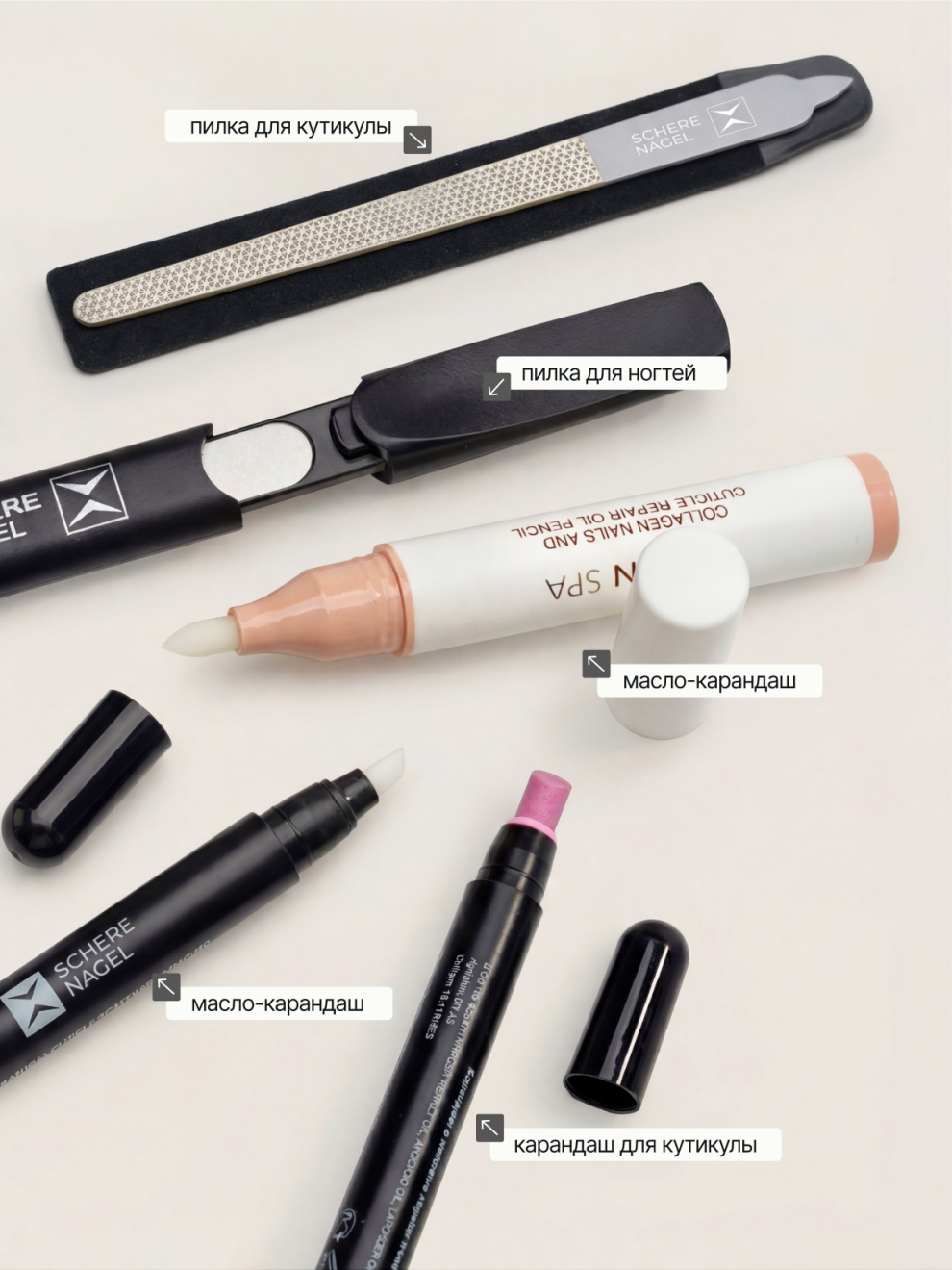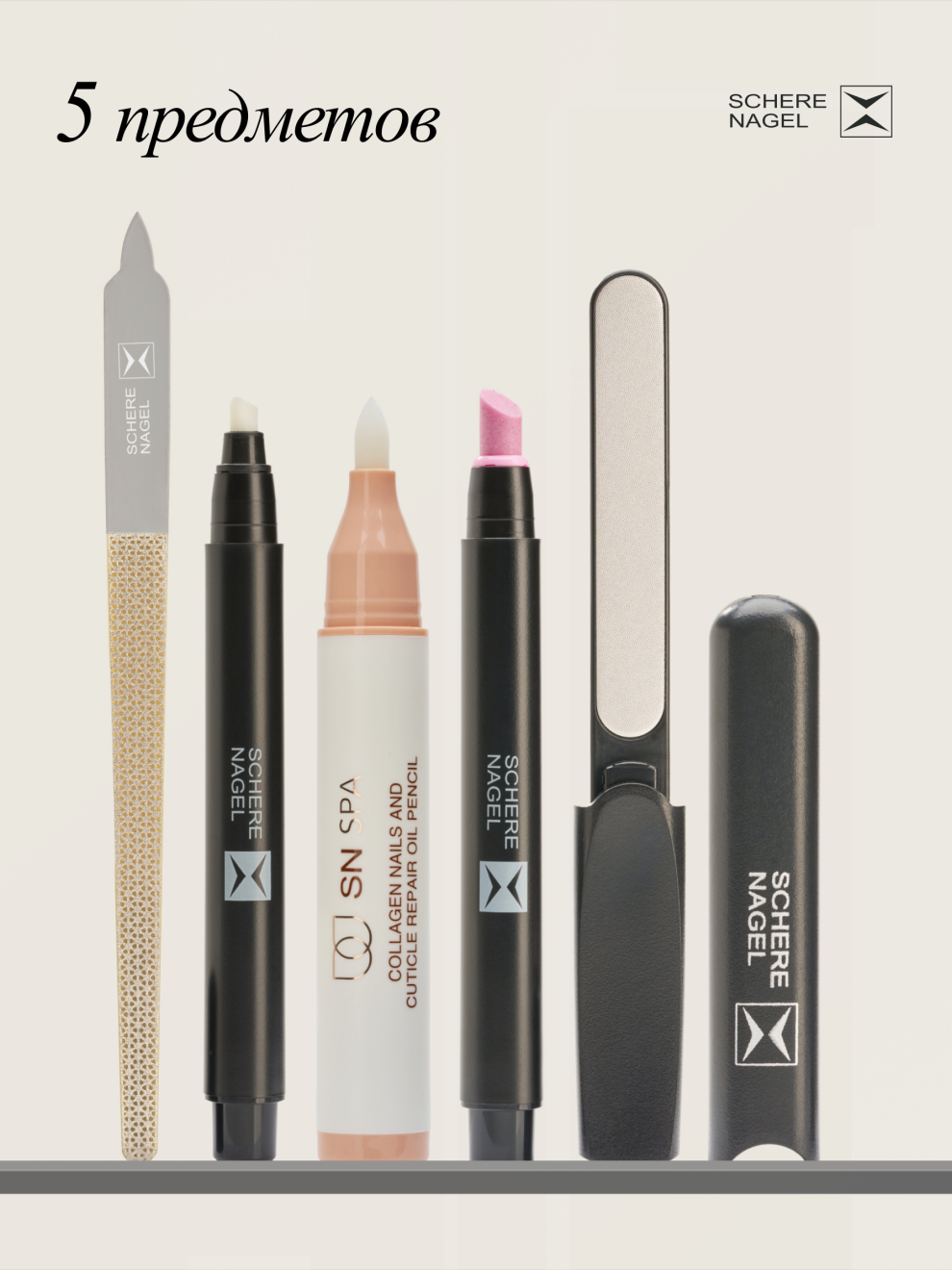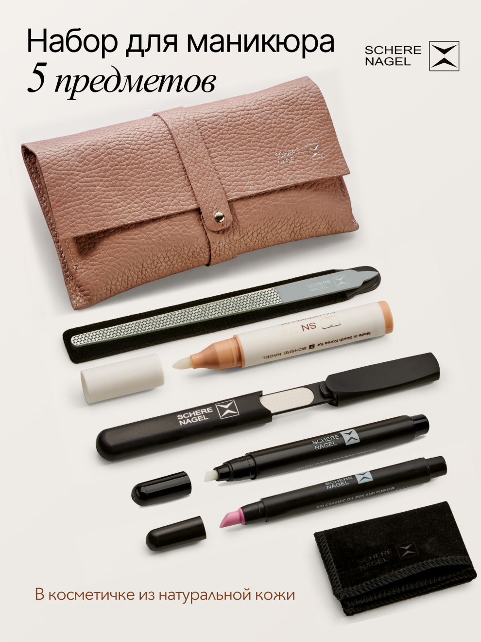 Набор для необрезного маникюра SCHERE NAGEL 5 предметов + Косметичка персиковая в подарок