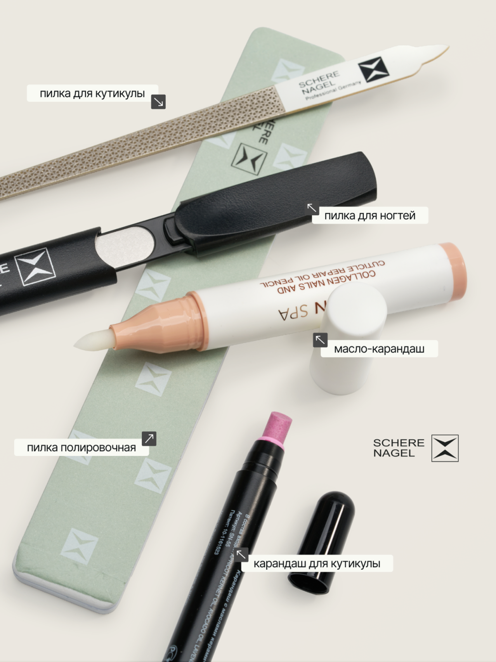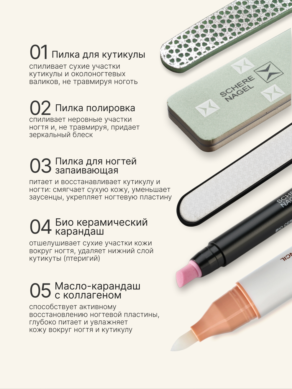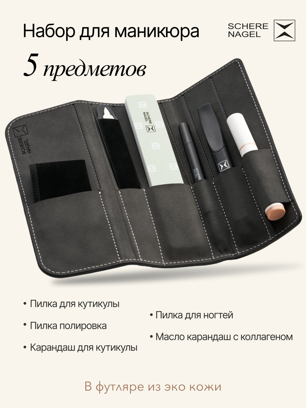 Набор для необрезного маникюра и педикюра SCHERE NAGEL 5 предметов в футляре