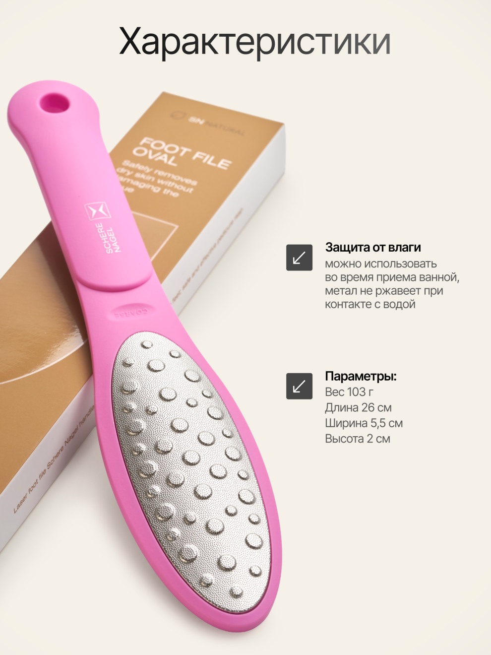 Уникальная лазерная тёрка Oval справится даже с самой огрубевшей кожей стоп. Продукт имеет две рабочие поверхности:
