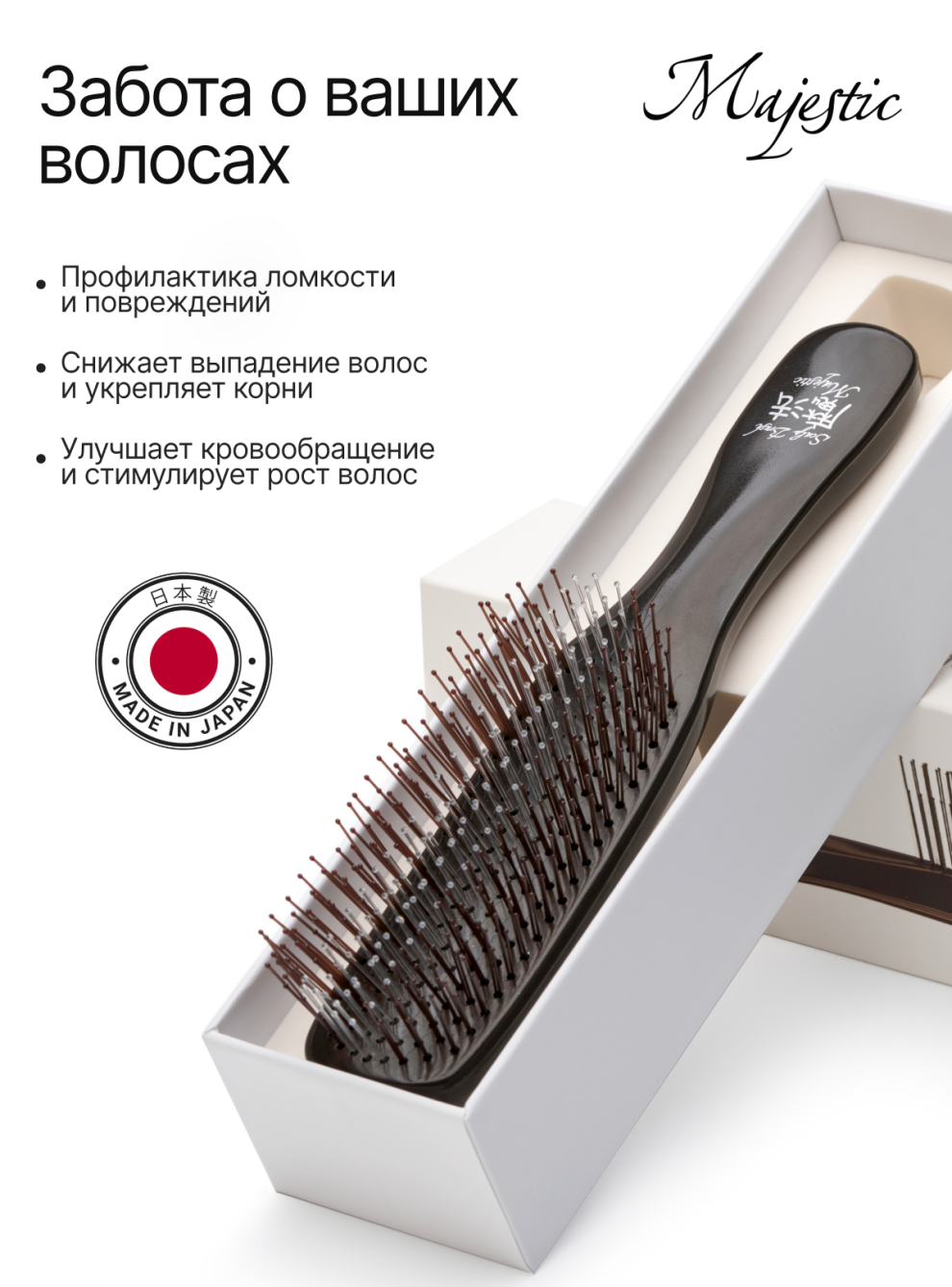Используйте мягкую японскую массажную расческу Majestic Scalp Brush черный кофе для улучшения состояния ваших волос и кожи головы. Она станет вашим незаменимым помощником в ежедневной рутине по уходу за волосами, обеспечивая здоровье и красоту ваших волос.