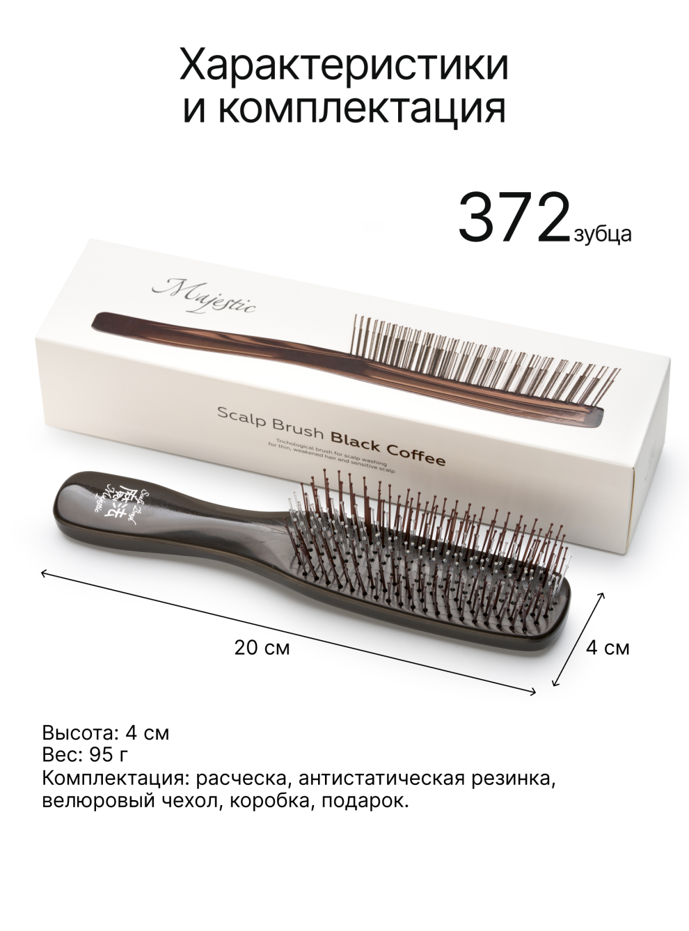 Мягкая японская массажная расческа Majestic Scalp Brush черный кофе — это уникальная трихологическая расчёска, созданная японскими учёными для деликатного очищения кожи головы и бережного расчёсывания.
