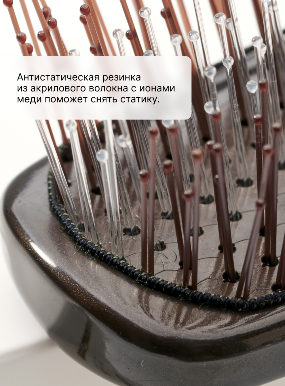 - Антистатическая резинка предотвращает накопление статического электричества, обеспечивая гладкость и послушность волос.