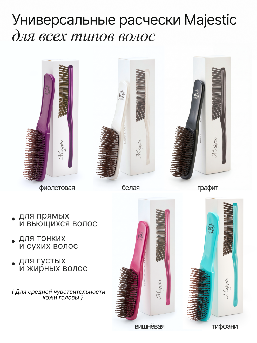 Расчески Majestic разработаны с учетом всех этих задач, чтобы ваши волосы выглядели наилучшим образом и подходят для всех типов волос — от тонких и сухих до густых и жирных.