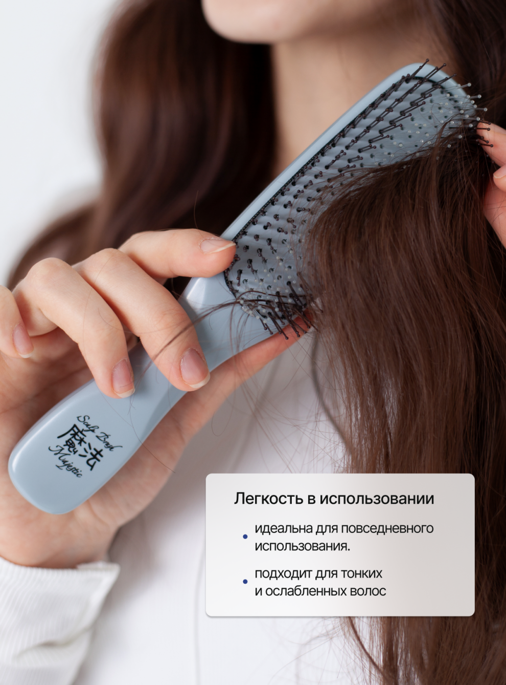 Расчёска подходит для тонких/ослабленных/кудрявых/путающихся волос, а также для чувствительной кожи головы.