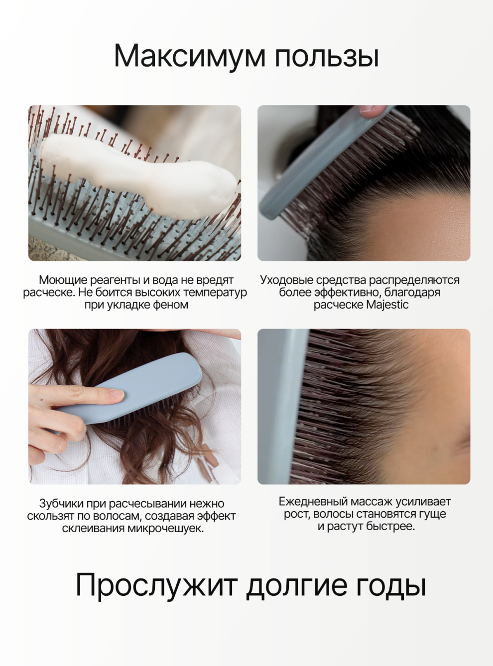 Расчески Majestic разработаны с учетом всех этих задач, чтобы ваши волосы выглядели наилучшим образом и подходят для всех типов волос — от тонких и сухих до густых и жирных.