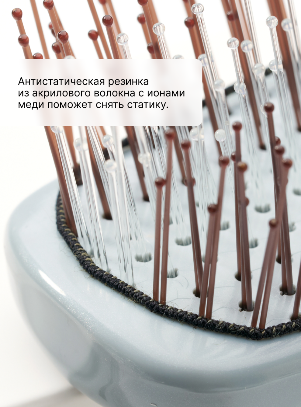 - Антистатическая резинка предотвращает накопление статического электричества, обеспечивая гладкость и послушность волос.