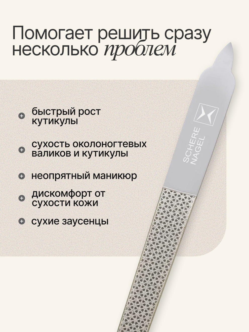 Умная пилочка Schere Nagel – то, что нужно для устранения боковых валиков и сухой кожи вокруг ногтя.