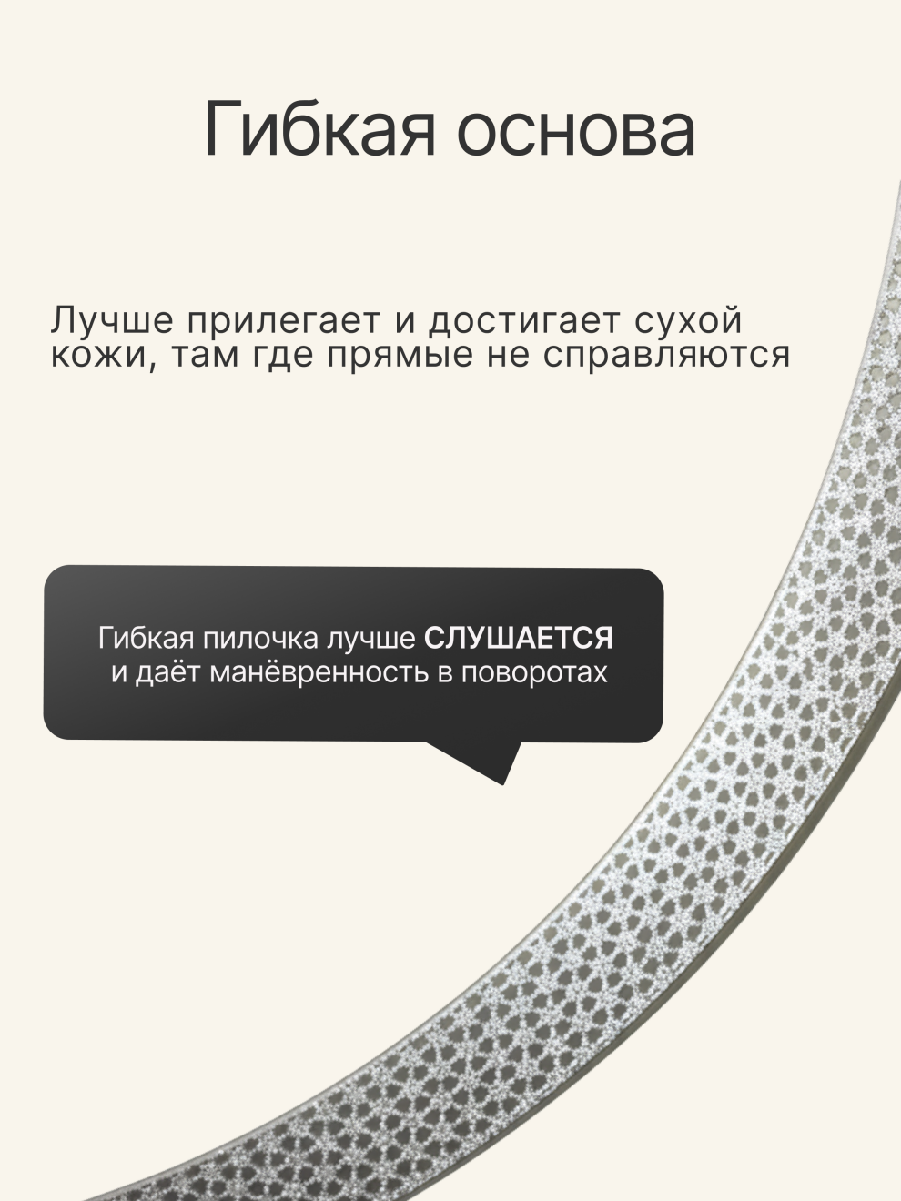 Благодаря запатентованной технологии алмазного напыления пилочка не затрагивает живую ткань и обеспечивает безопасное удаление огрубевшей кожи.