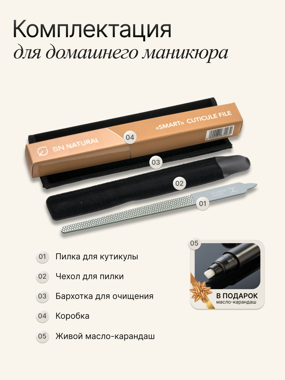 5Во время маникюра рекомендуем протирать пилочку бархоткой, которая идёт в комплекте, чтобы очищать ее от сухой кожи, а уже после маникюра мыть водой с мылом.